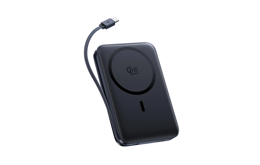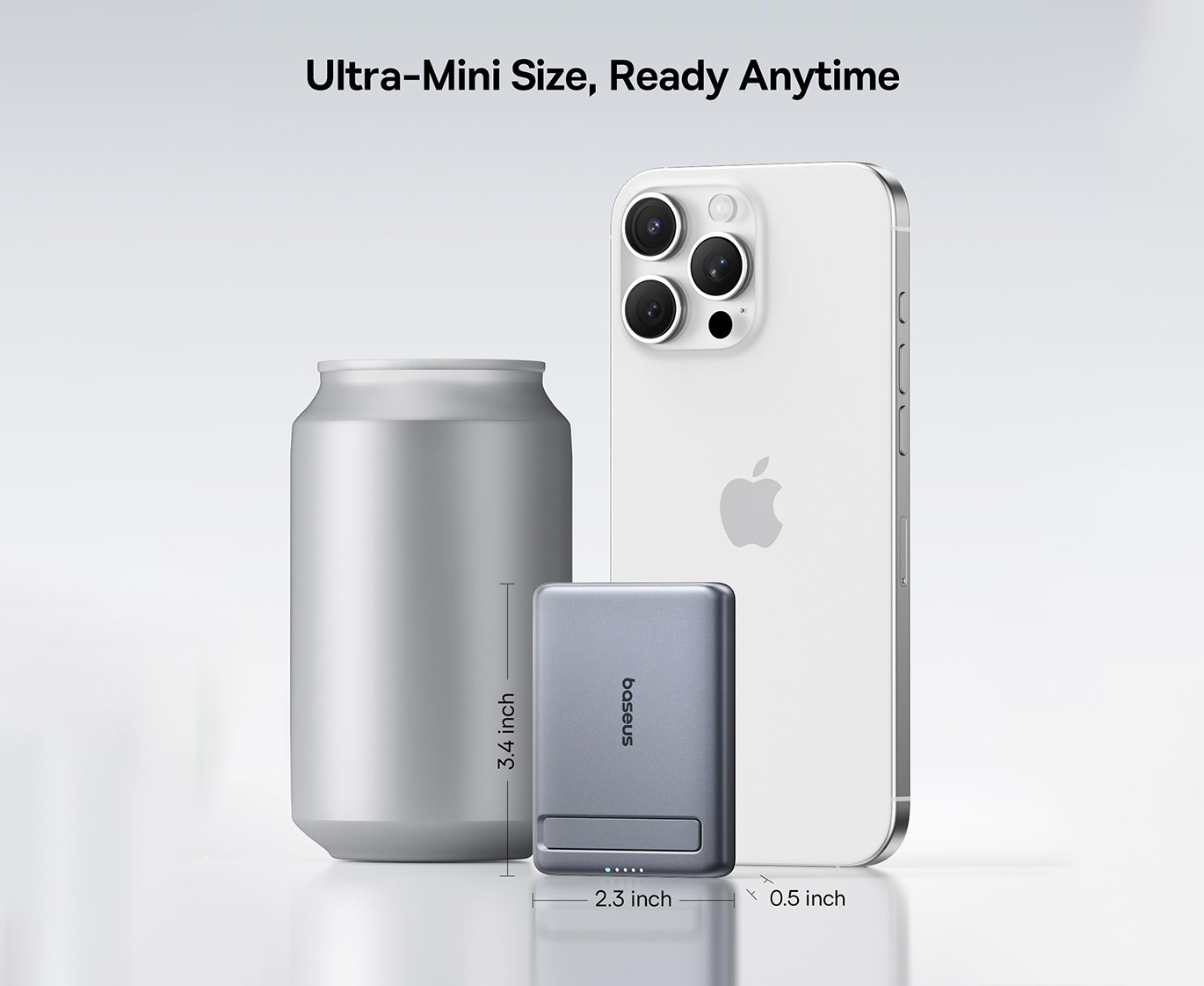 Baseus Picogo Power Bank, Smallest 5000mAh Magnetic Portable Charger with Stand, Qi2 Certified 15W Ultra-Mini MagSafe Battery Pack, Alloy Wireless Travel Fast Charger for iPhone 17/16 Series(Grey)(Black)
