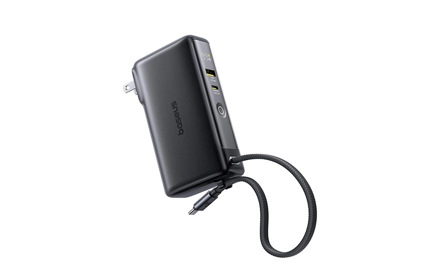 Baseus 70W Universal Travel Adapter with Retractable Cable, 6-in-1 International Plug Adapter, USB-C PD Fast Charging Worldwide Wall Charger for USA/EU/UK/AUS and Over 200 Countries – Enercore CG11(70W-Black)