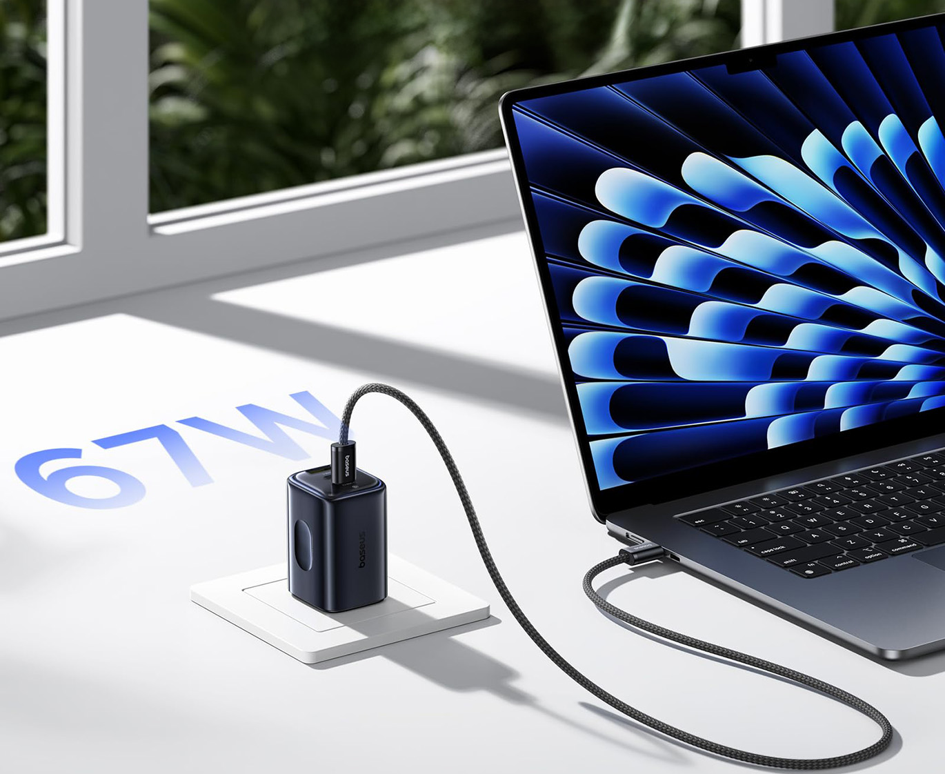 Three-port fast charging, foldable plug, compatible with multiple devices.