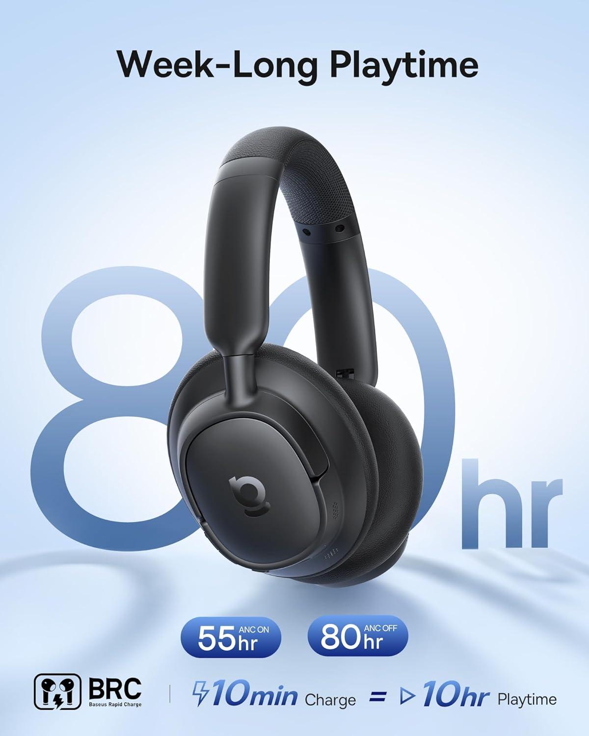 [Week-Long Playtime]: Stay unplugged for days—up to 80 hours with ANC off (55 hours with ANC on). Just 10 minutes of quick charge gives you 10 hours of playtime, so you're always ready to go.