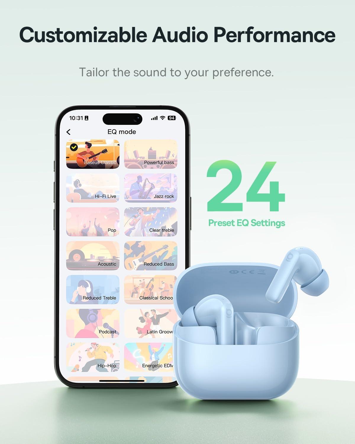 12 mm Super-Bass Driver: These wireless earbuds deliver heart-thumping bass with SuperBass adaptive algorithm and 12 mm dynamic drivers. Personalize your sound with 24 customizable EQ settings—ideal for hip-hop, electronic, classical, and more music styles. These wireless earbuds deliver rich, immersive audio specifically tailored to your unique taste