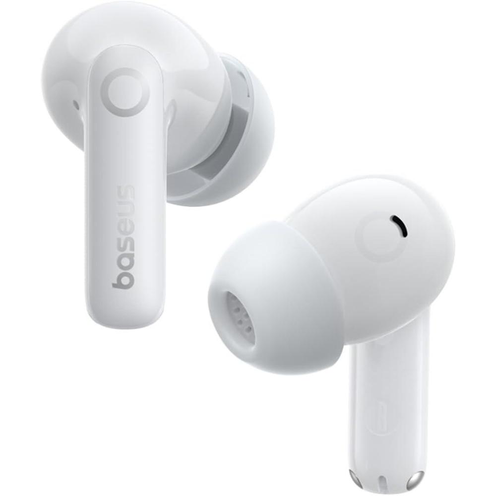 imageBaseus Bass BP1 Pro Noise Cancelling Wireless Earbuds RealTime Adaptive Noise Cancelling Adaptive Active EQ LDAC HiRes Sound 6Mic AI Clear Calls 55H Playtime IP55 Waterproof Bluetooth 60Moon White