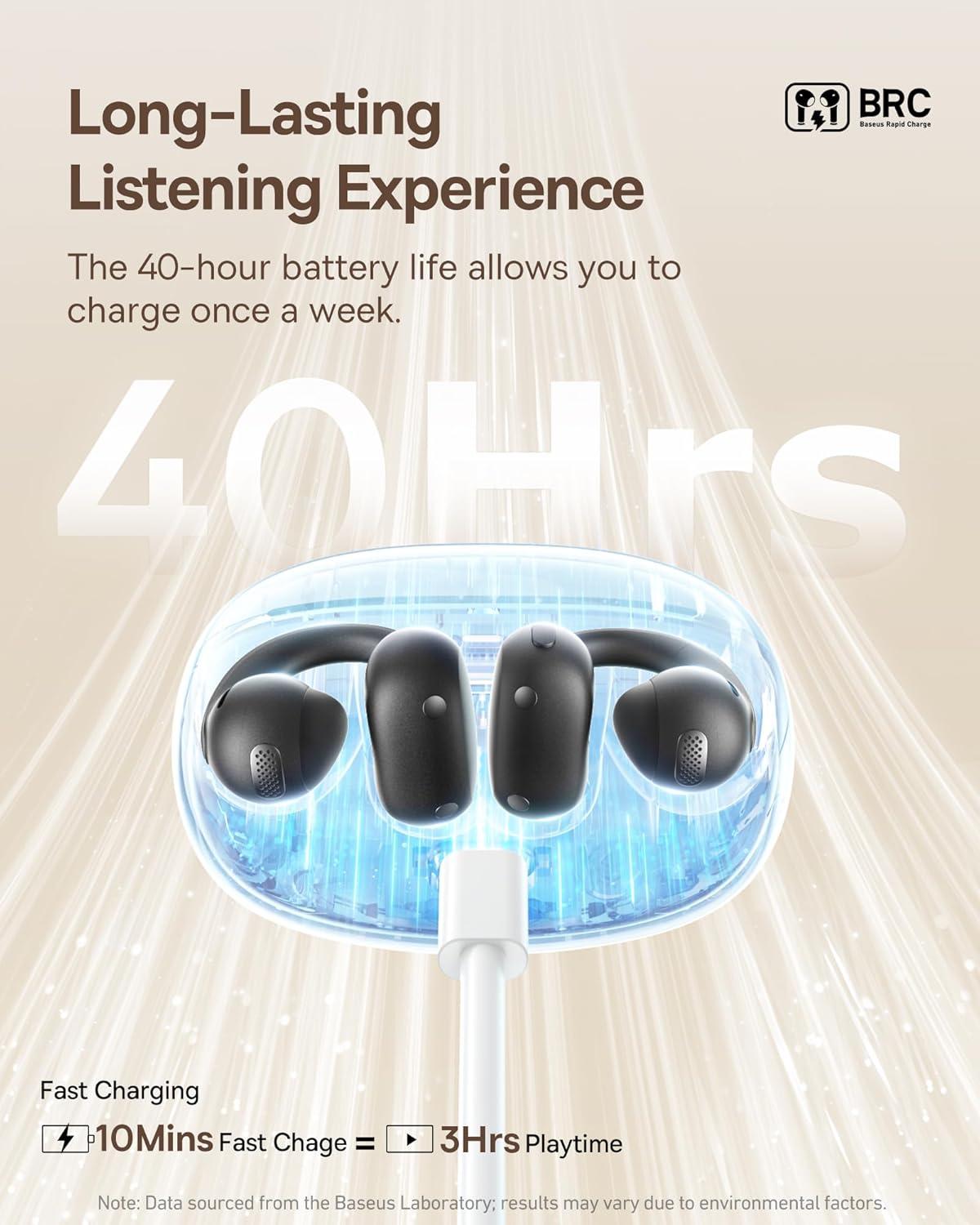 [Adaptive Voice Capture] : Featuring Baseus DNN Adaptive Noise Reduction Algorithm and 2 noise cancelling mics, the Bowie MC1 open ear headphones cancels wind noise when biking or any other noise, and accurately picks up your voice, ensuring that you're heard clearly anytime, anywhere