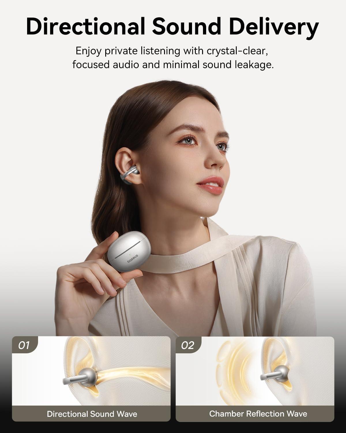 Zero-Interruption Bluetooth 6.0: Experience ultra-fast, low-latency, stable audio with advanced Bluetooth 6.0 wireless technology. These open-ear headphones feature Baseus Smart Connect (BSC) technology, enabling seamless and effortless dual-device connection and switching with zero interruptions