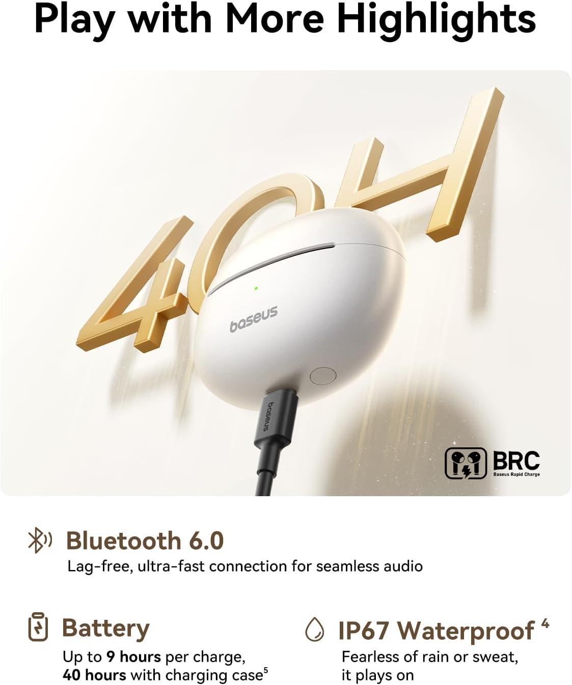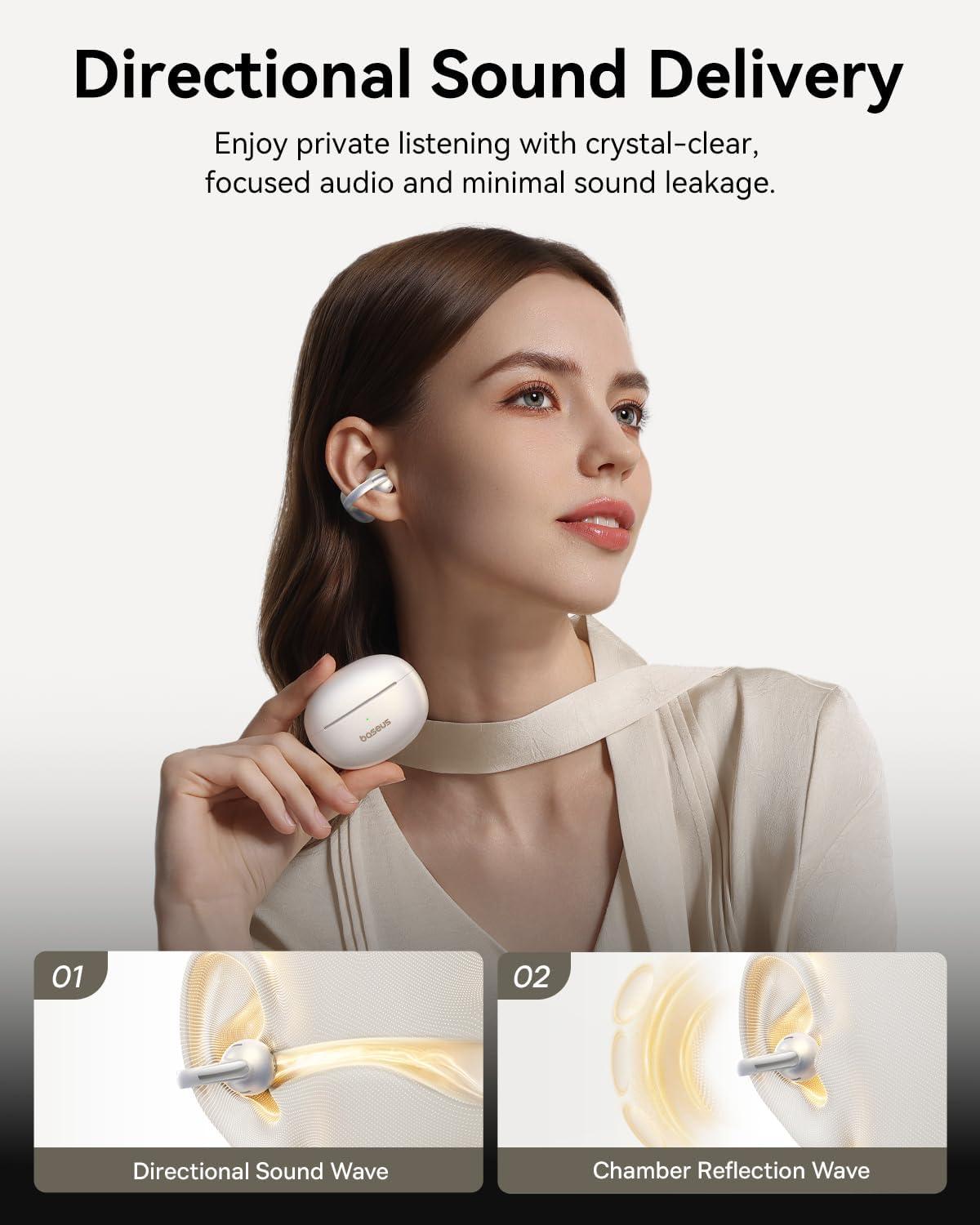 Zero-Interruption Bluetooth 6.0: Experience ultra-fast, low-latency, stable audio with advanced Bluetooth 6.0 wireless technology. These open-ear headphones feature Baseus Smart Connect (BSC) technology, enabling seamless and effortless dual-device connection and switching with zero interruptions
