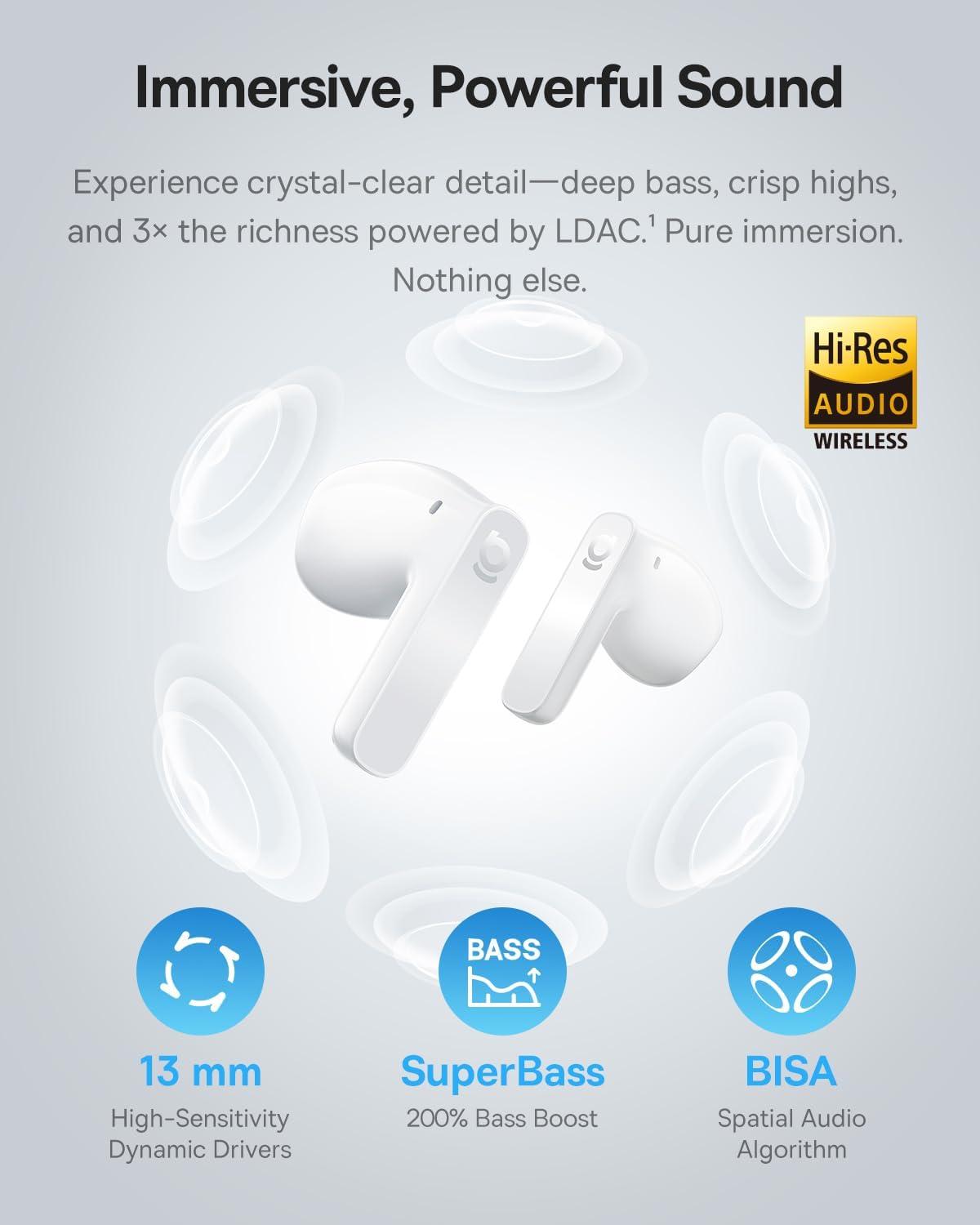 Hi-Res Audio Certified with LDAC: Experience unparalleled clarity and detail. These Bluetooth earbuds support the LDAC codec, transmitting 3x more audio data than standard Bluetooth for true lossless-quality sound. The 13mm dynamic drivers and SuperBass 2.0 technology deliver a rich, powerful foundation, making every genre come alive