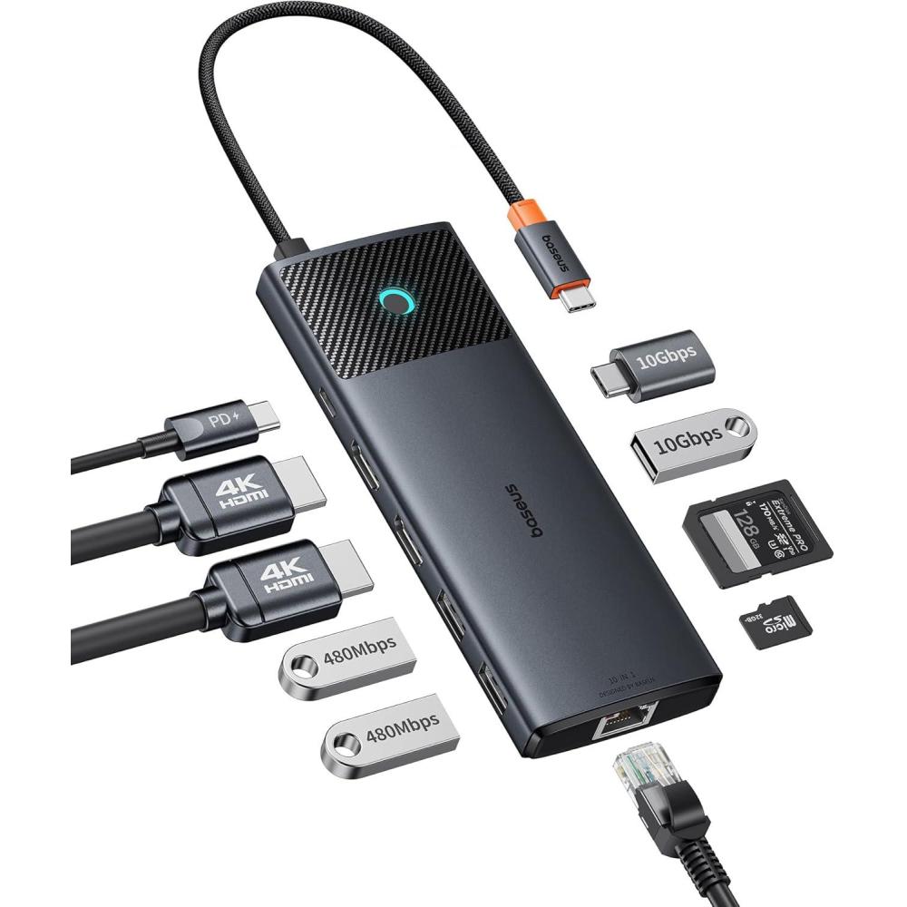 10-in-1 Massive Expansion: This docking station is equipped with 2 HDMI ports, 1 USB-C data port, 3 USB-A ports, 1 PD 100W USB-C port, 1 Ethernet port, 1 SD/TF card slot, 10 in 1 USB C Docking Station offers excellent connectivity to satisfy all your expansion needs at once, much higher efficiency at work.*Note: The USB-A and USB-C Data Ports Don't Support Fast Charging.