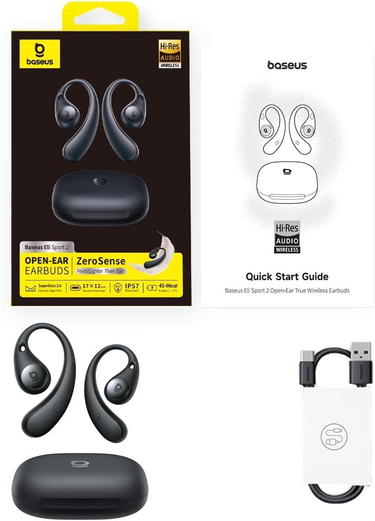 Be the first to review “Baseus Eli Sport 2 Open-Ear Headphones Wireless Earbuds,Secure Earhook Sport Design,Ultra-Comfort,4-Mic Clear Calls, IP57 Waterproof,45H Play, Bluetooth 6.0 Earhook Fit Running Workout Gym -Black(Black)”
