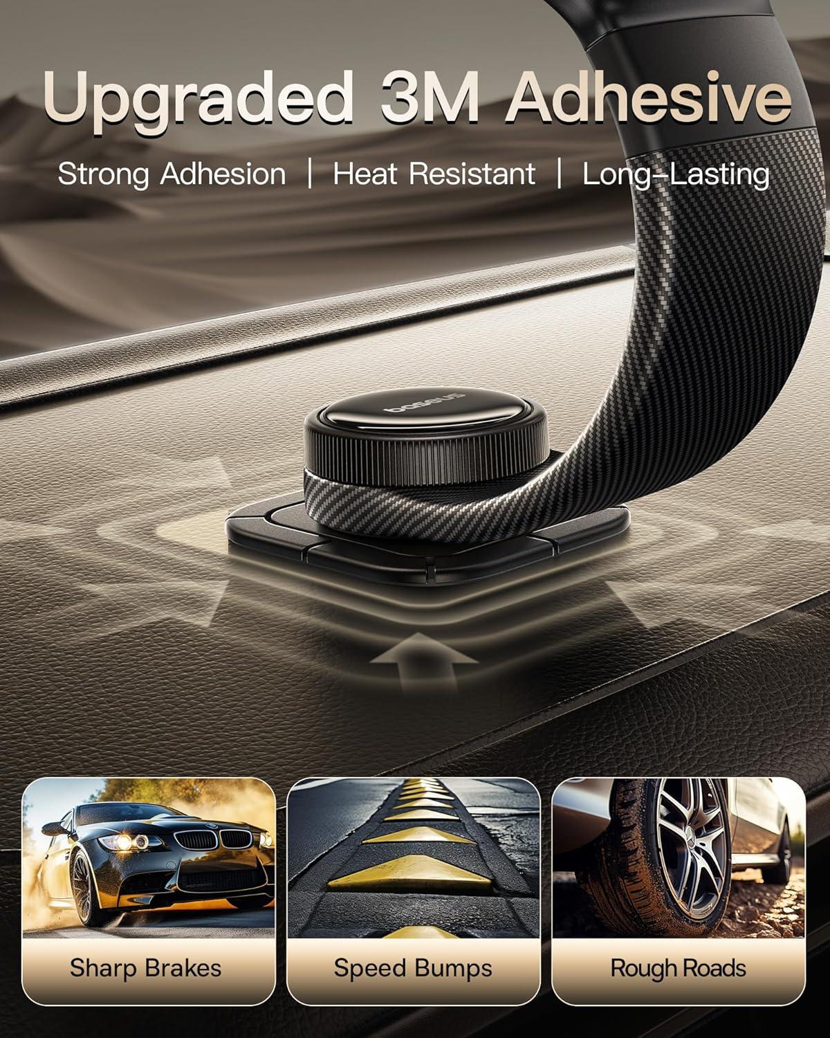 Built to Withstand Heat, Cold & Time: Featuring premium 3M adhesive (used in supercar panels), the Baseus dashboard cell phone holder offers unmatched durability. It resists high temperatures and constant vibration—no slipping, sagging, or peeling, even in extreme climates. A long-lasting car holder for iphone built for any weather