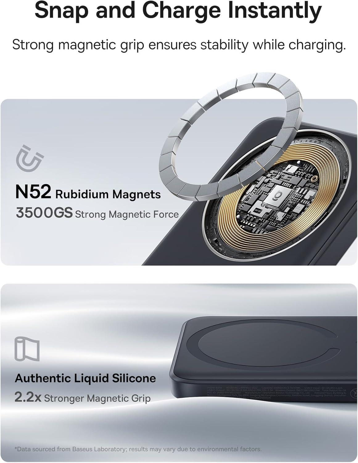 ⚡️【Super Fast Charging】Equipped with a 15W max Qi wireless charging pad and a 22.5W max USB-C port, making this Magsafe Qi2 Power Bank a versatile companion for your devices. Whether you are using it as an iPhone wireless charger or charging via USB-C, you can effortlessly charge your devices at home or on the go.