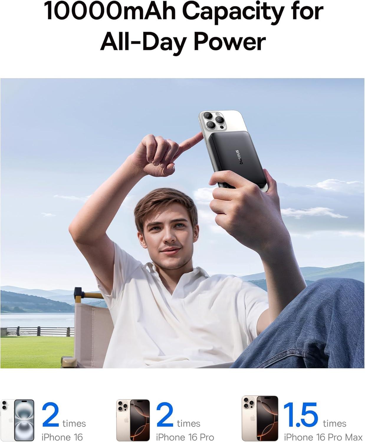 Baseus for MagSafe Portable Charger, Qi2 Certified 15W Wireless Magnetic Power Bank 10000mAh with USB-C Cable 22.5W PD Charging, Battery Pack Compatible with iPhone 17/16/15/14/13 Pro/Pro Max Series(Black)