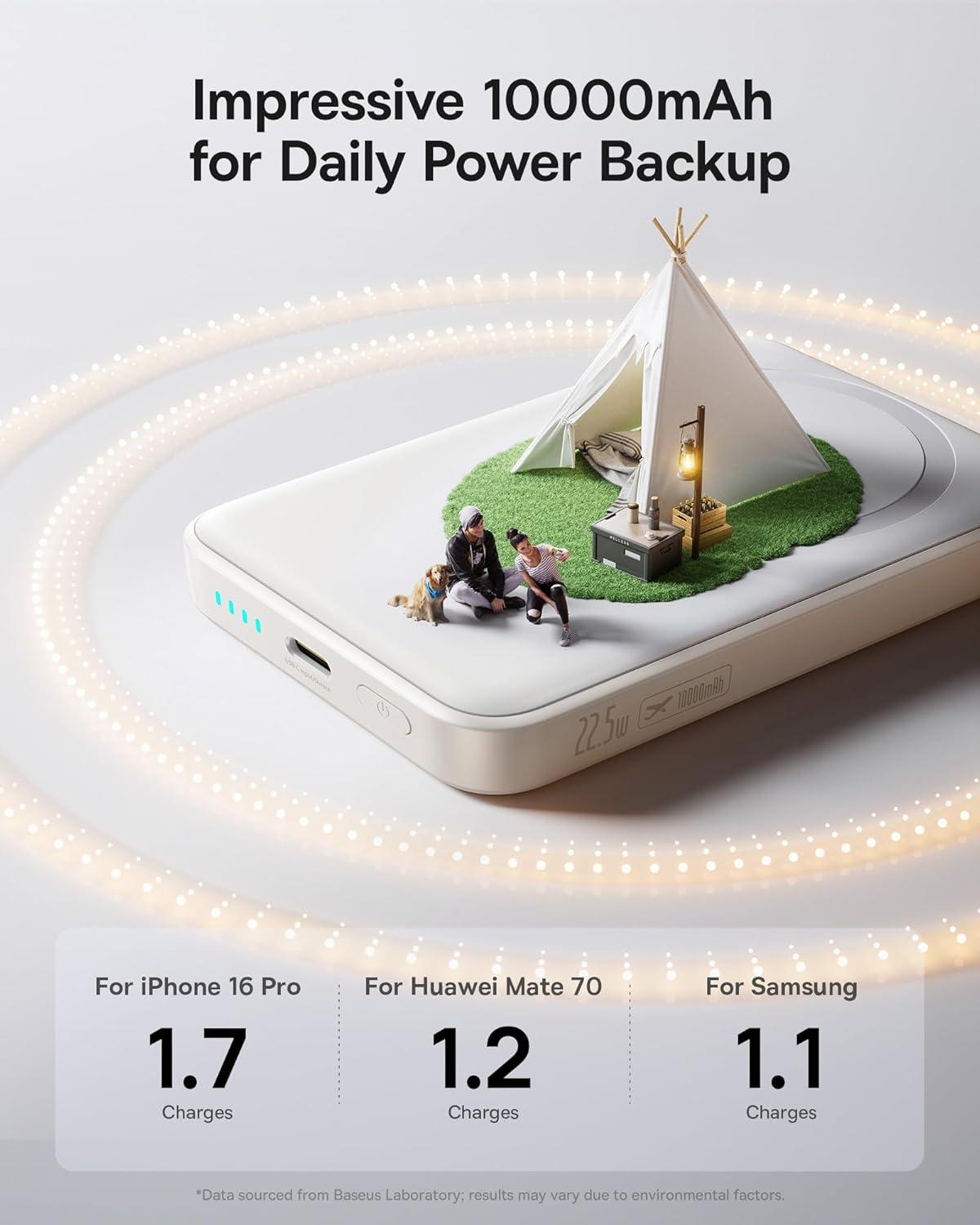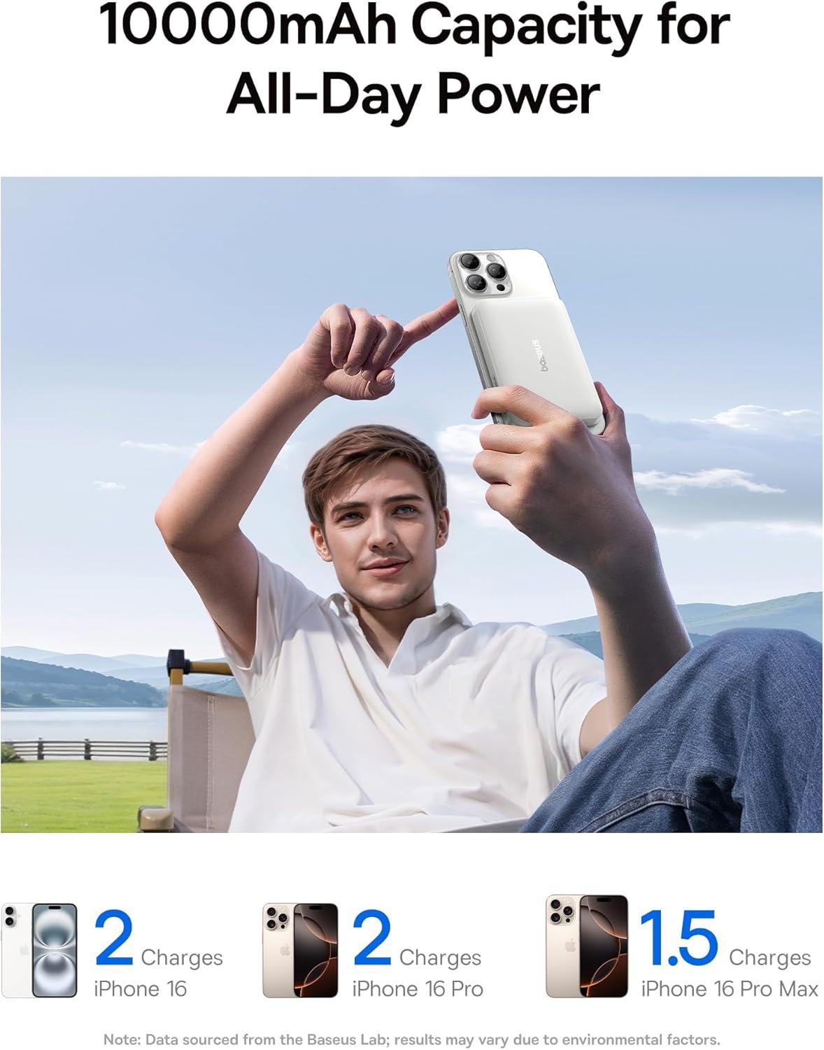 🔋【High-Capacity Power On the Go】Never run out of juice with a 10000mAh power bank slim enough to slide in your pocket! This qi2 charger can charge your iPhone 16 Pro Max to 37% in just 30 minutes via the 22.5W USB-C port, Perfect for travel, work, or emergencies – your all-day portable charger iPhone companion.