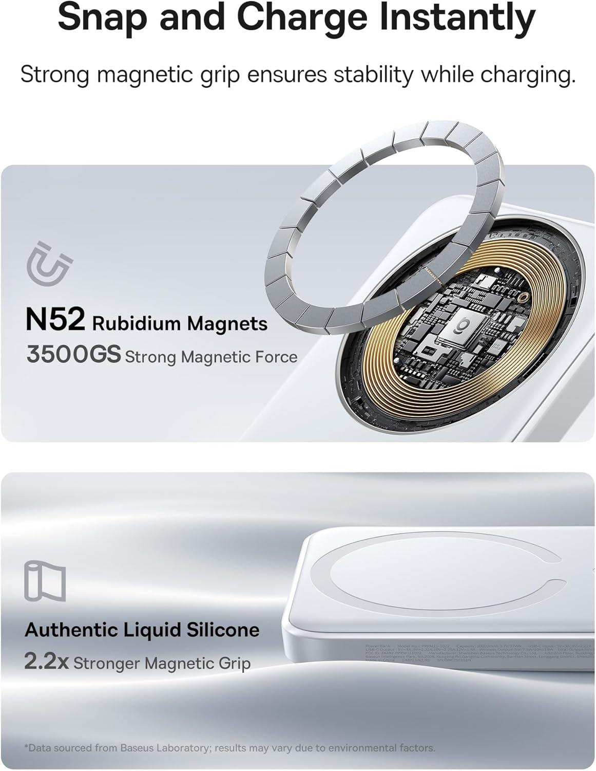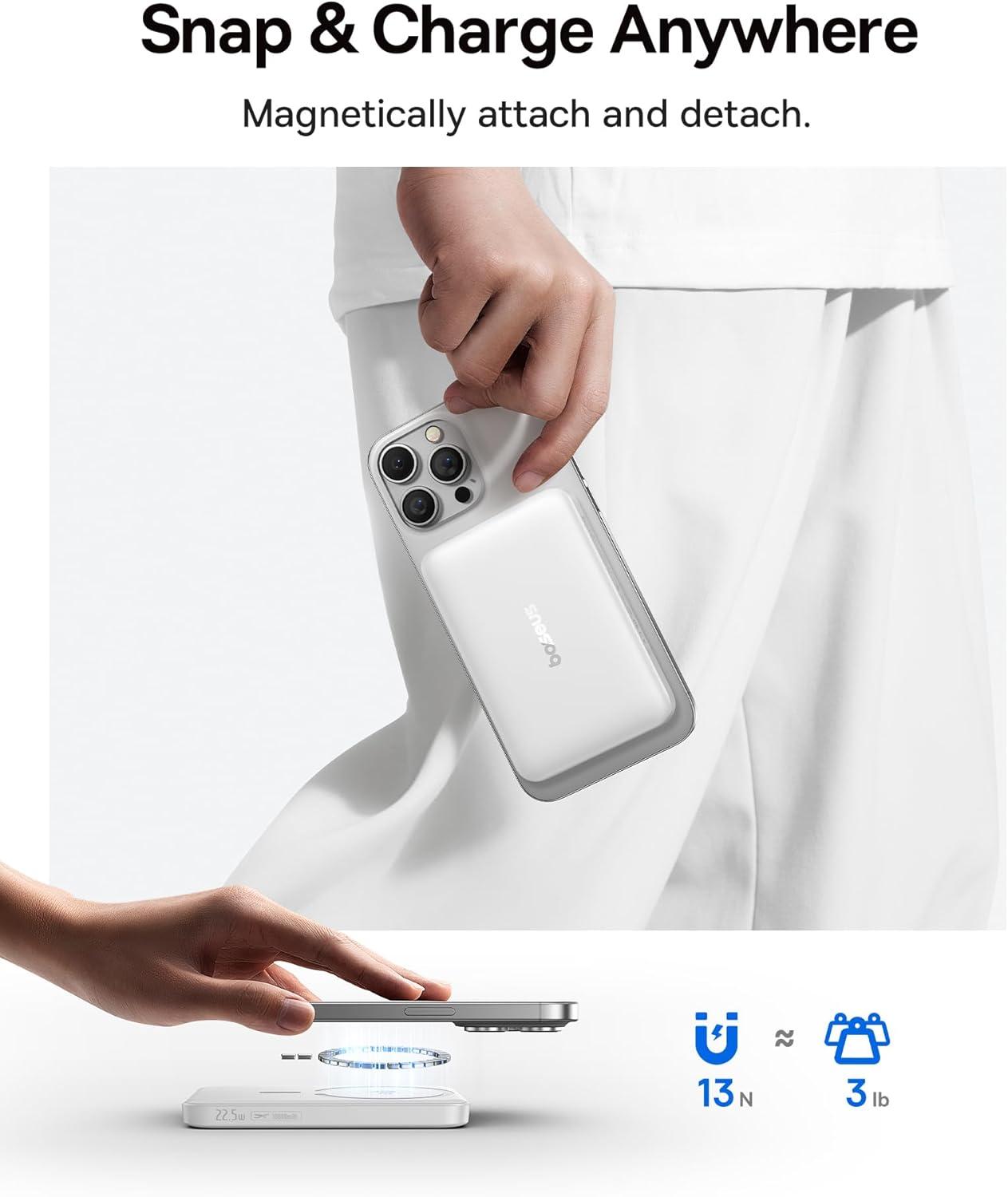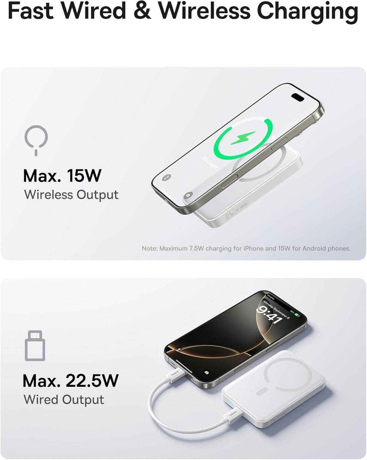 ⚡️【Super Fast Charging】Equipped with a 15W max Qi wireless charging pad and a 22.5W max USB-C port, making this Magsafe Qi2 Power Bank a versatile companion for your devices. Whether you are using it as an iPhone wireless charger or charging via USB-C, you can effortlessly charge your devices at home or on the go.