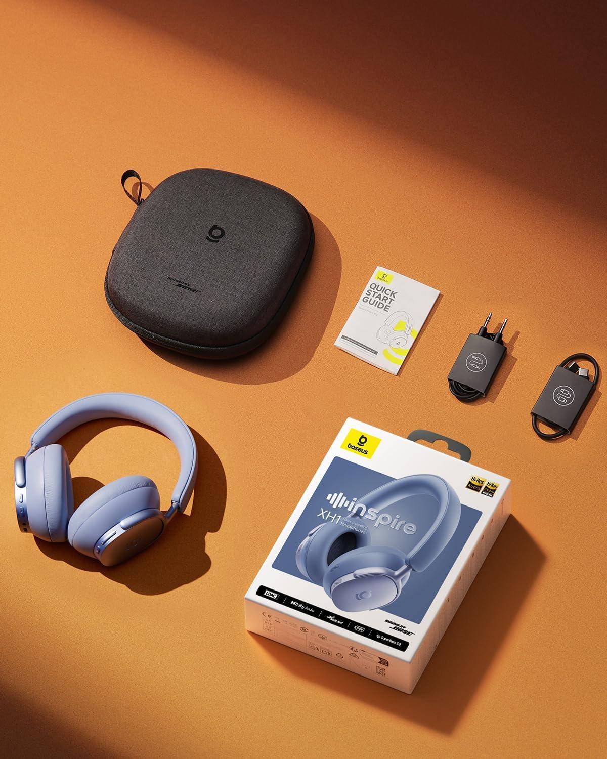 Baseus Inspire XH1 Adaptive Active Noise Cancelling Headphones, Sound by Bose, Dolby Audio, Premium Real-Time Adaptive ANC, Adaptive Tuning Rich Sound, Hi-Res Audio, 100H Playtime – Cosmic Black(Twilight Blue)
