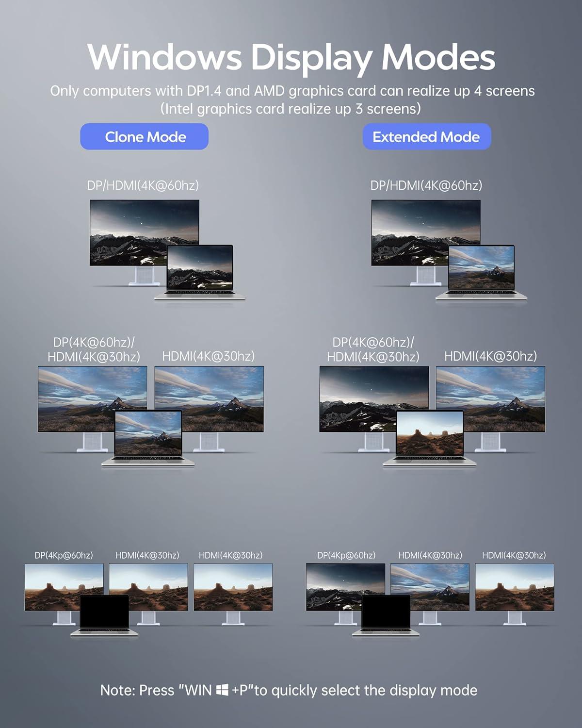 Triple 4K Display Support: Connect both HDMI and DP displays to enjoy ultra-clear 4K resolution on 3 monitors, usb docking station is perfect for multitasking, creative work, or immersive entertainment