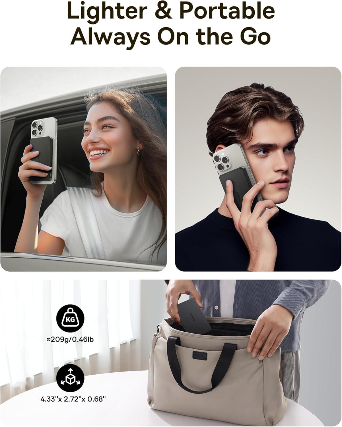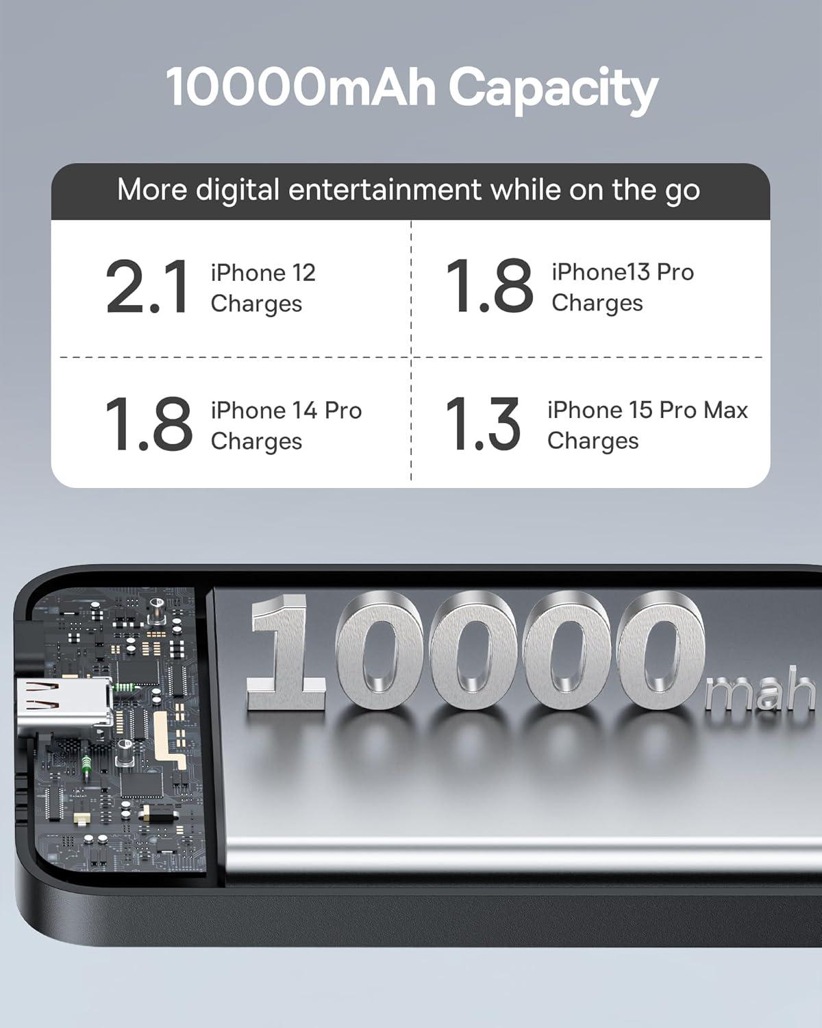 ✅【𝐀𝐥𝐥-𝐝𝐚𝐲 𝐖𝐨𝐫𝐫𝐲-𝐟𝐫𝐞𝐞 𝐏𝐨𝐰𝐞𝐫】10,000mAh portable -sized battery can charge your iphone 15 or Samsung S24 for 1.8 times. This magnetic power bank provides multiple charges throughout the day, ready for use wherever you are. It is allowed to be taken on the plane. Ideal for business trips, vacations, shopping or outdoor sports activities.