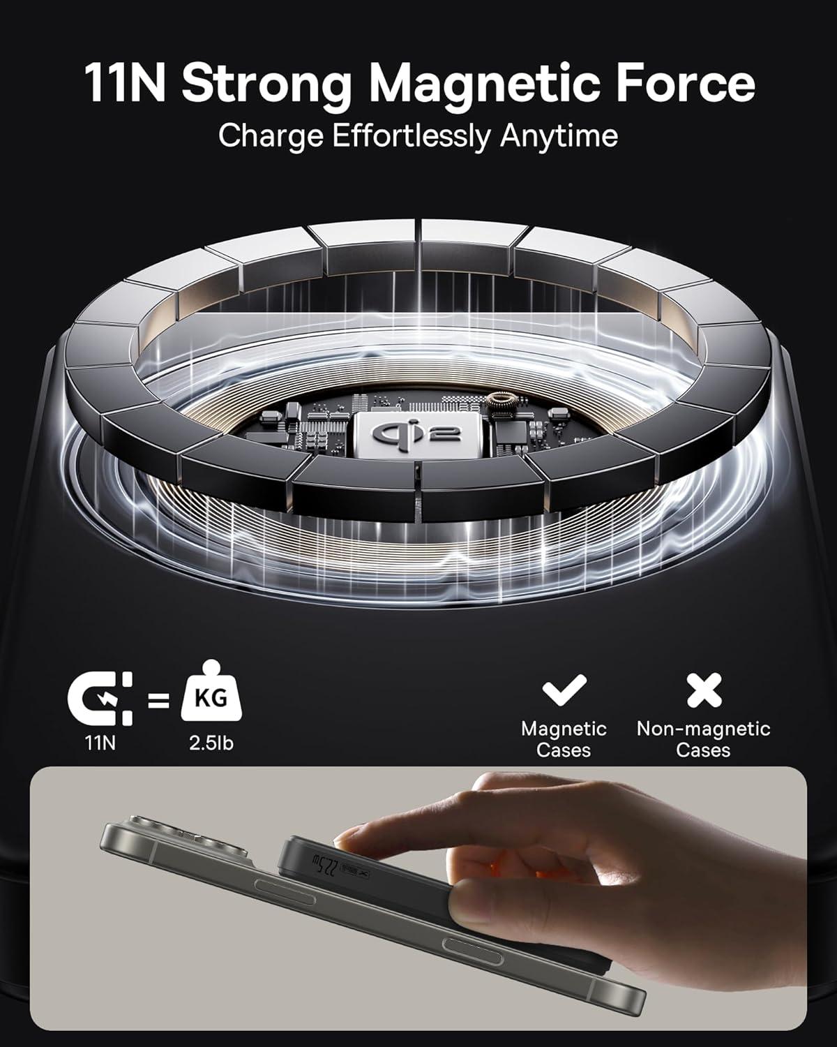 ✅【𝐌𝐚𝐠𝐧𝐞𝐭𝐢𝐜 𝐒𝐧𝐚𝐩 & 𝐆𝐨】Unlocks the QI2 standard's perfect Magnetic Power Profile, ensuring precise alignment with your iPhone 12 or later, it could prevent misalignment, leading to less produced heat, and can also be used to extend battery life. With 2.5lb strong magnets offer a firm attachment to iPhone and can easily fit into your pocket, making it your perfect charging companion on the go.