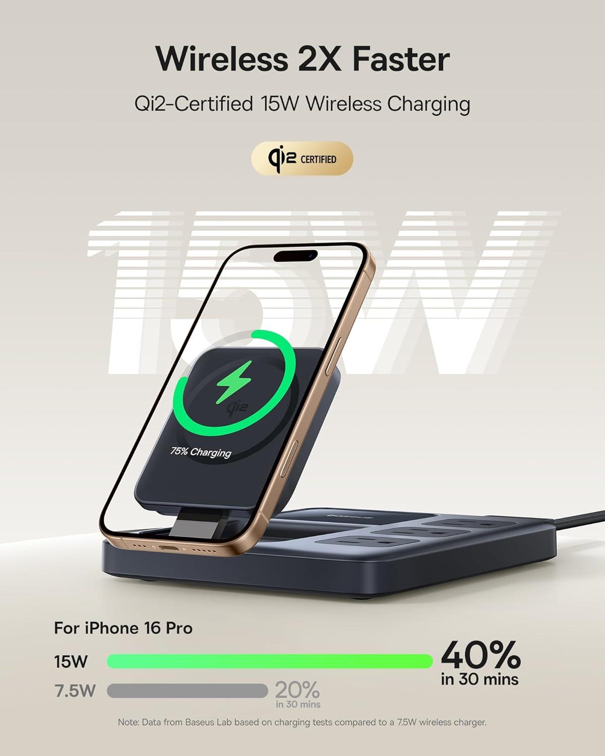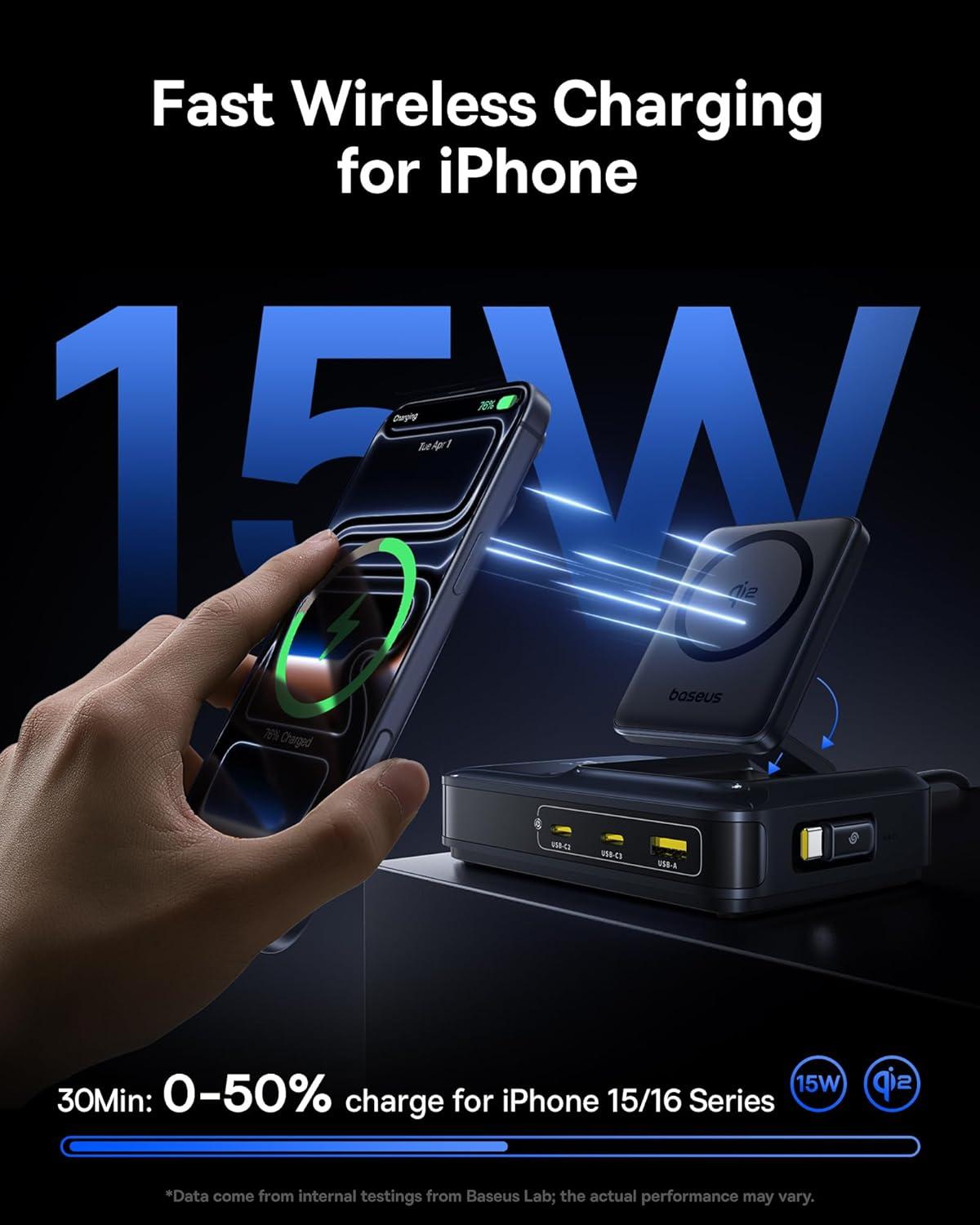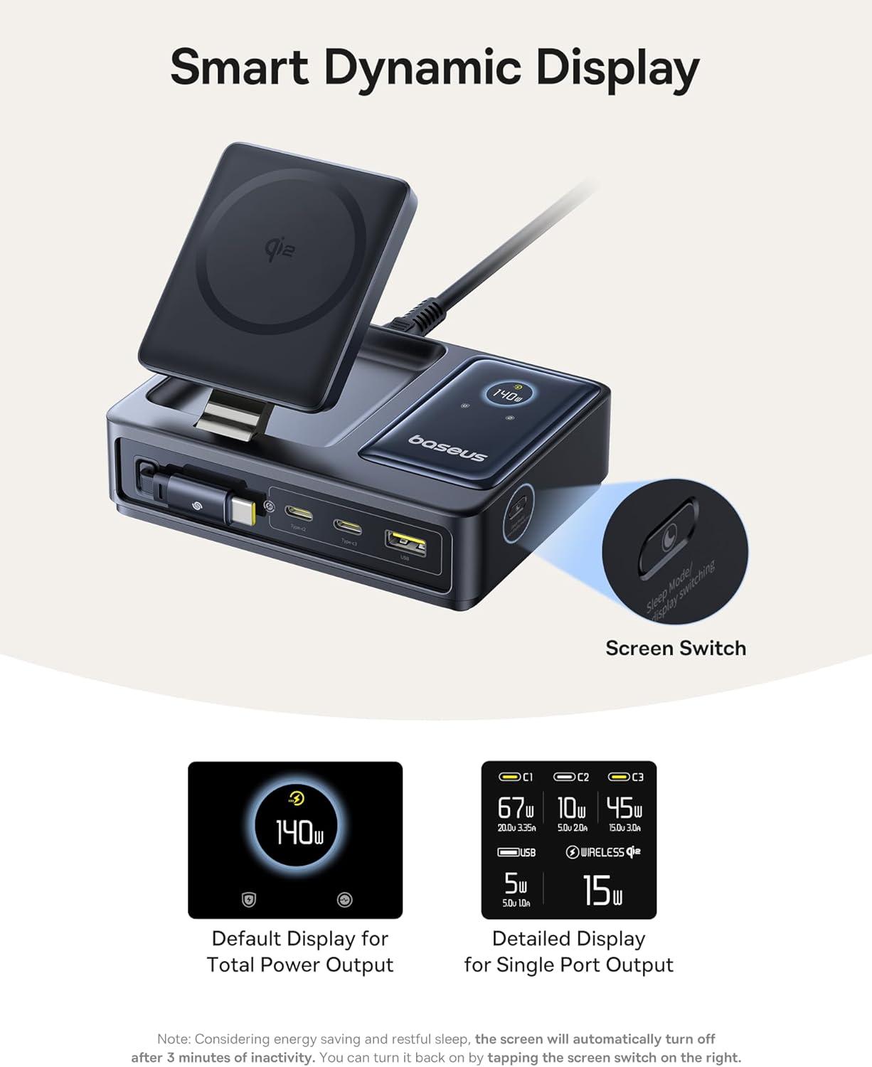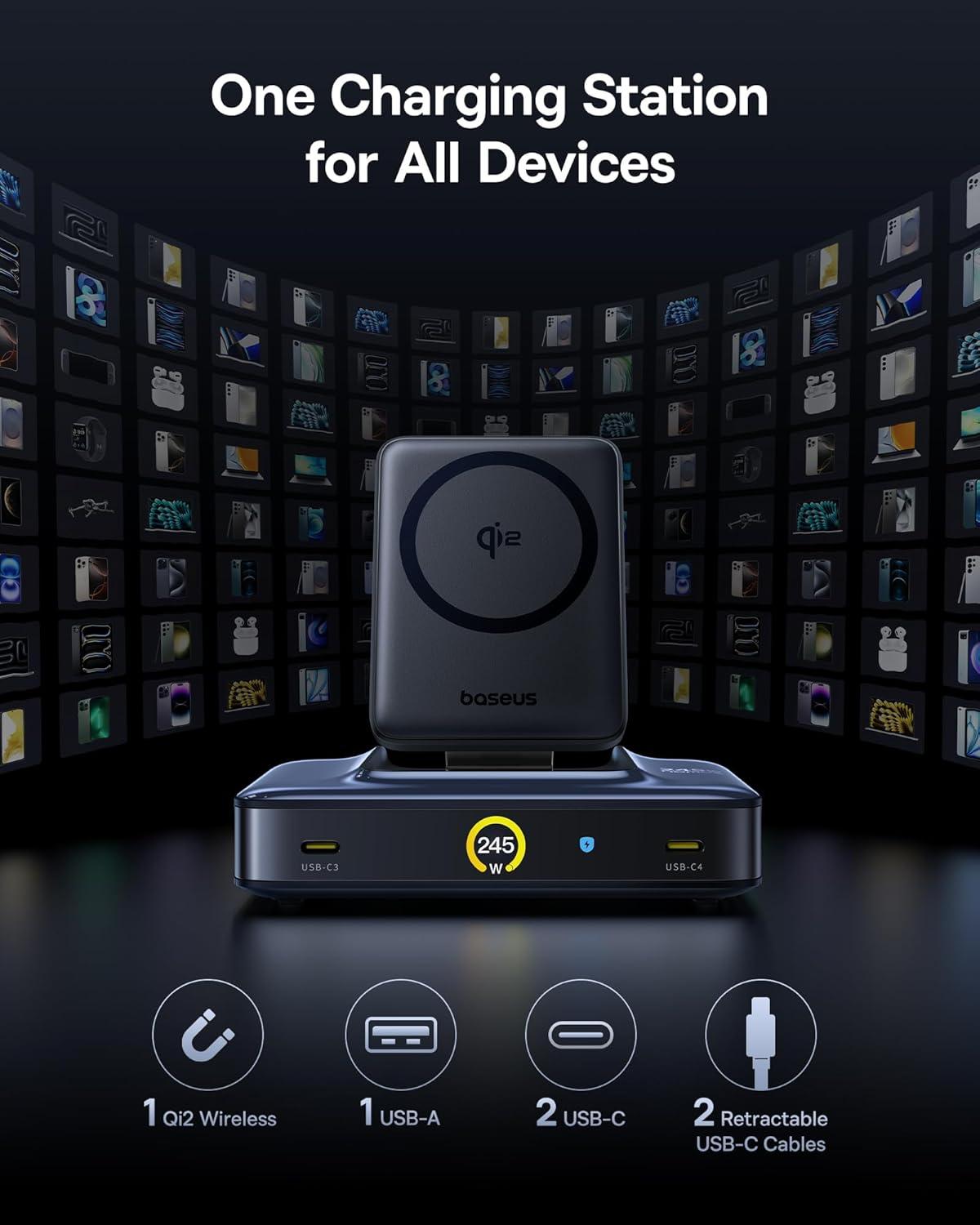 BPS3.0 Smart Power Allocation: The Baseus charging station features BPS 3.0 smart power allocation, monitoring current 2,000 times per second to optimize speed and safety. Compatible with PD 3.1, QC 4, PPS, SCP, and more, it supports laptops, tablets, phones, and accessories from Apple, Samsung, Google, and others. A modular internal design separates outputs to reduce heat buildup, with full protection against short circuits, over-voltage, and overheating.