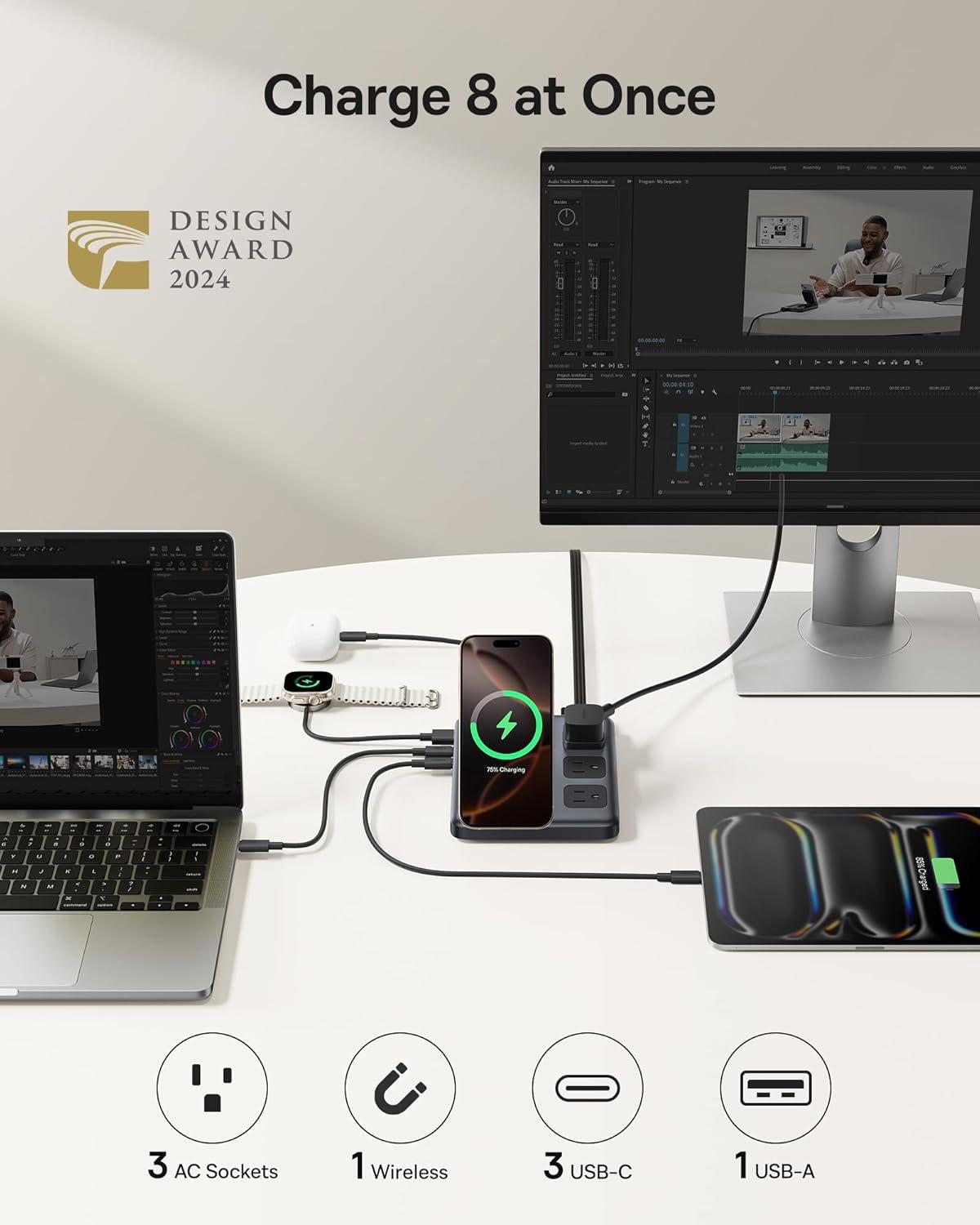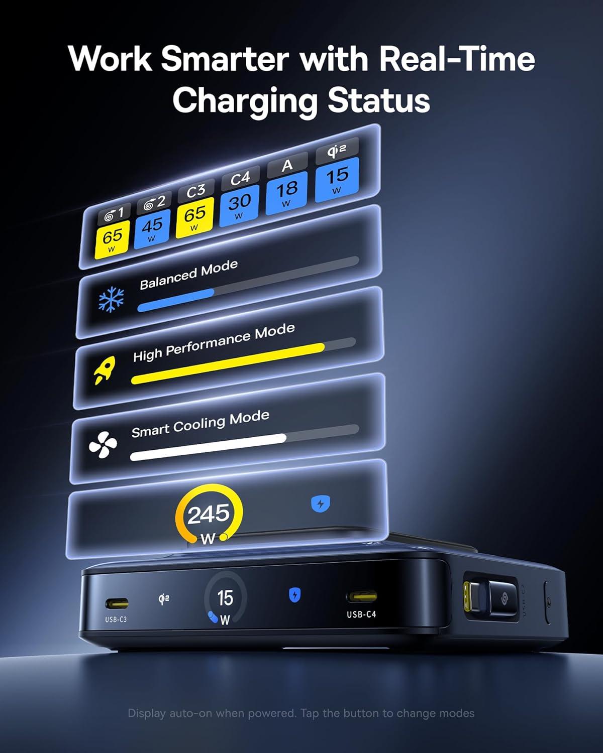 245W Power for 6 Devices at Once: This 245W charging station is powered by an advanced GaN chip, making it 30% more compact than traditional chargers. It supports 6 devices’ simultaneous charging, with intelligent power distribution for maximum efficiency. The USB-C3/C4 port can deliver up to 140W massive power, fast-charging a MacBook Pro 16″ to 49% in just 30 minutes.