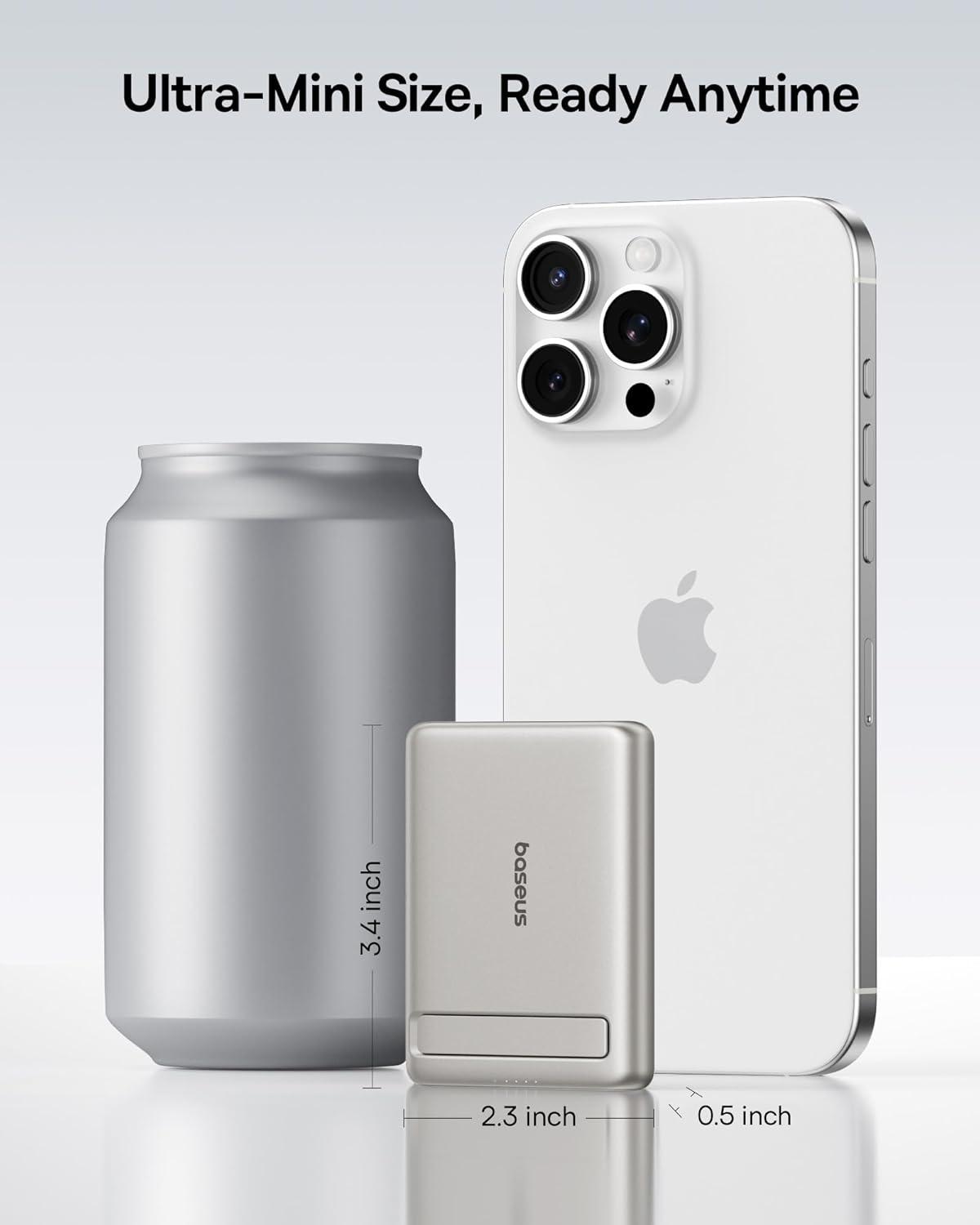 Be the first to review “Baseus Picogo Power Bank, Smallest 5000mAh Magnetic Portable Charger with Stand, Qi2 Certified 15W Ultra-Mini MagSafe Battery Pack, Alloy Wireless Travel Fast Charger for iPhone 17/16 Series(Grey)(Natural Titanium)”