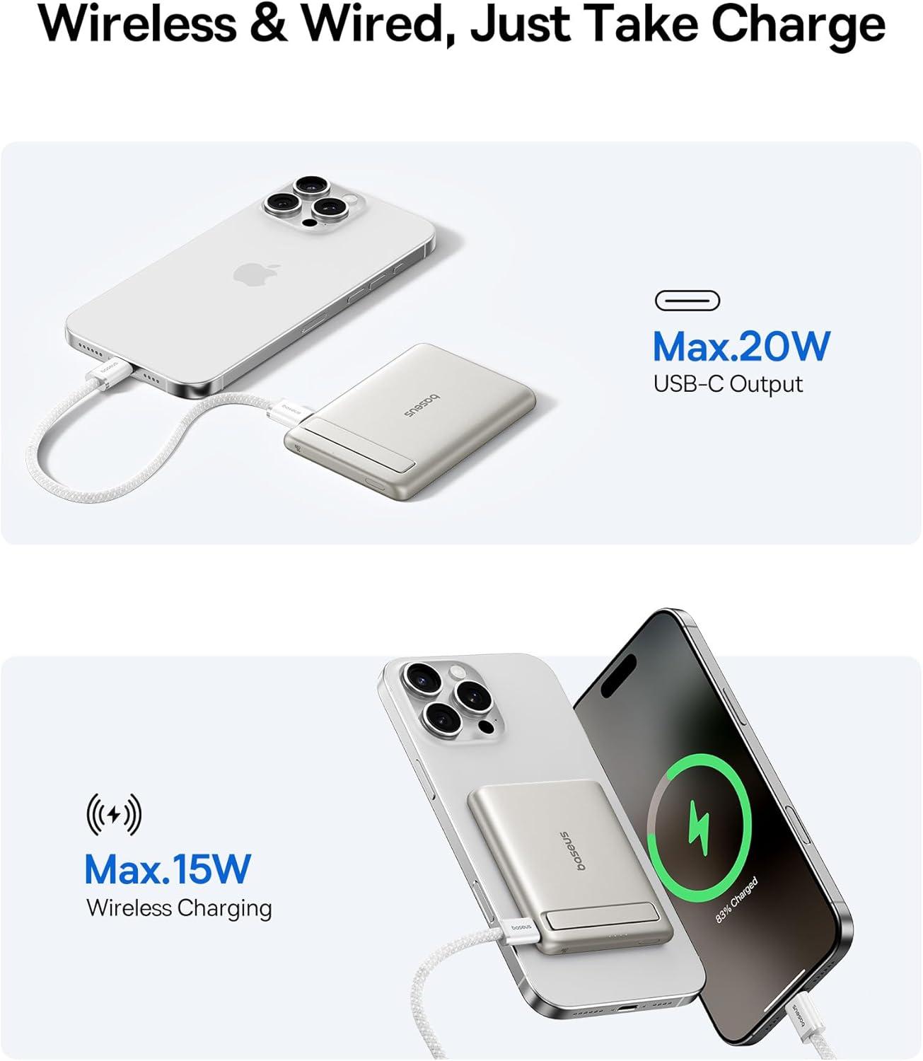 ⚡️【Super Fast Charging】Equipped with a 15W Max QI2 wireless charging and a 20W Max USB-C port, whether you are using it as an iPhone wireless charger or charging via USB-C, you can effortlessly charge your devices at home or on the go. The reliable 5000mAh capacity provides extra power when you need it most, eliminating the anxiety of low battery.