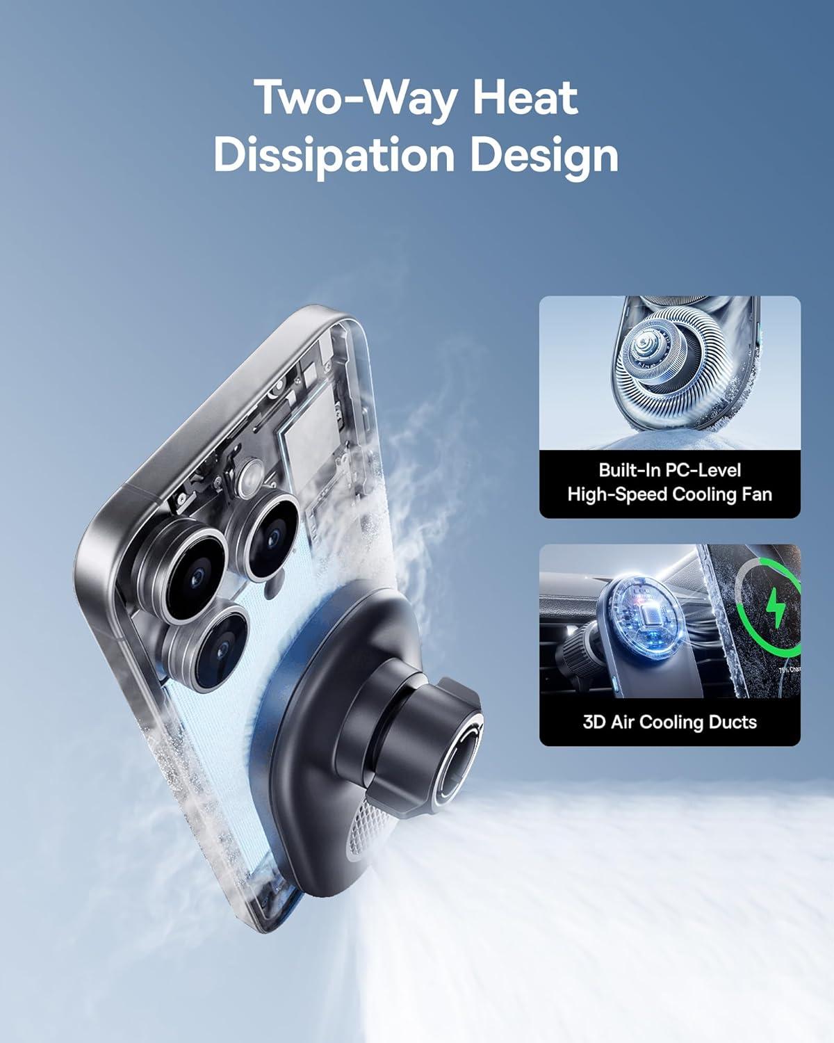 Two Efficient Modes: Two modes offer two kinds of outstanding efficiency: In basic mode, the charging is whisper-quiet with superior cooling efficiency, while the ultra mode turns up the fan and delivers superior charging efficiency, safeguarding your phone from overheating to ensure longevity and ultimate safety during every journey.