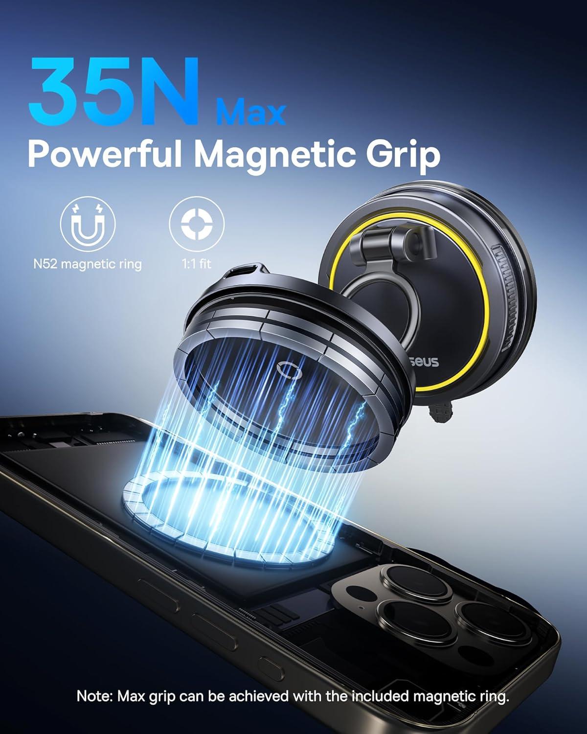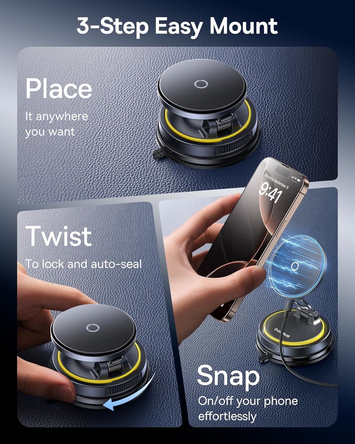 Baseus Vacuum 15W for Magsafe Car Mount Charger, 119LBS Suction Cup 720° Adjustable Magnetic Car Charger Phone Holder, Foldable Cell Phone Holder with Reusable Washable Gel for Car & for 17to13 iPhone